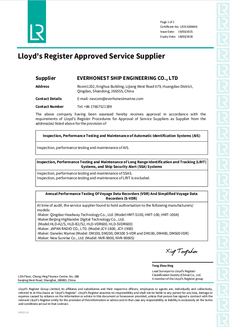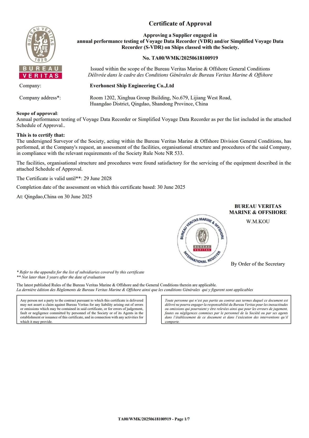 • Global Support: Wherever your vessel sails, Everhonest is ready to deliver prompt, reliable service and support.